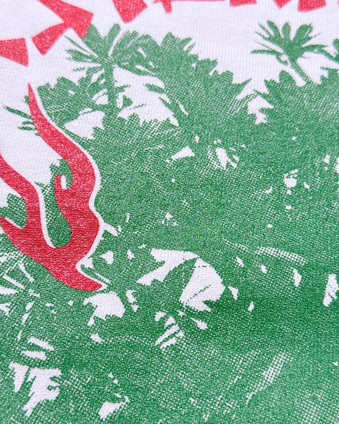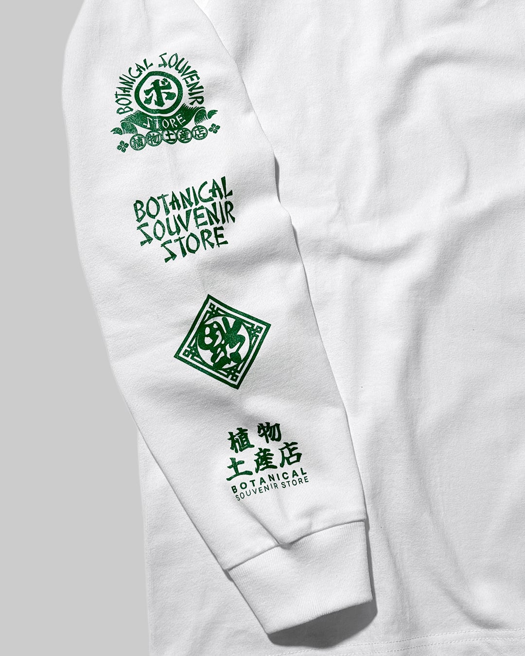ホワイトカラーのTシャツに園芸を象徴する深緑と、赤のインクを使用。重厚感のある9.1ozのボディを使用。
