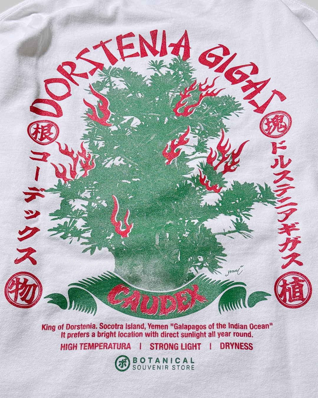 第一弾は国内最大級に育成されたソコトラ島原産の希少種「ドルステニア・ギガス」をモチーフにした一枚。